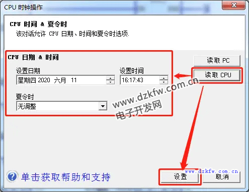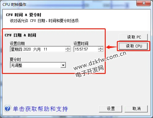 第三步:(点击读取CPU,即可查看当前PLC实时时间)