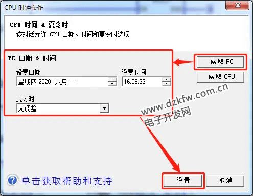 第二步:(根据自己需求来设定PLC当前时间,在左侧CPU时间修改然后点击设置即可)