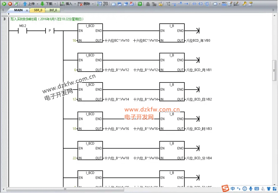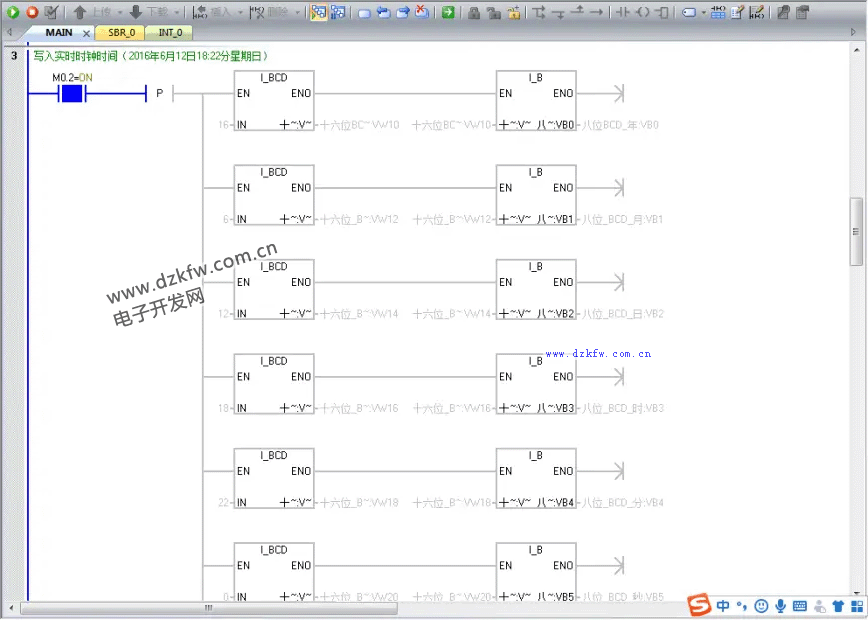 第四步:(监控写入PLC设定时间,设定时间: 2016年6月12日18:22分星期日)