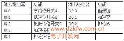 控制要求:按下加液按钮时,加液泵启动并开始加磷化液,当液位到达低液位B 的位置时,启动输送链,当液位到达高液位A 的位置时,加液泵停止。当液位下降到低液位B时,又启动加液泵加液,如此自动进行加液控制。如果由于泄露等其他原因导致液位处于C液位时,停止输送链的运行。当磷化槽使用了一断时间之后需要换液时,按下排液按钮,打开排液阀,并停止输送链的运行,当液位处于极低液位C以下时,延时3min关闭排液阀。