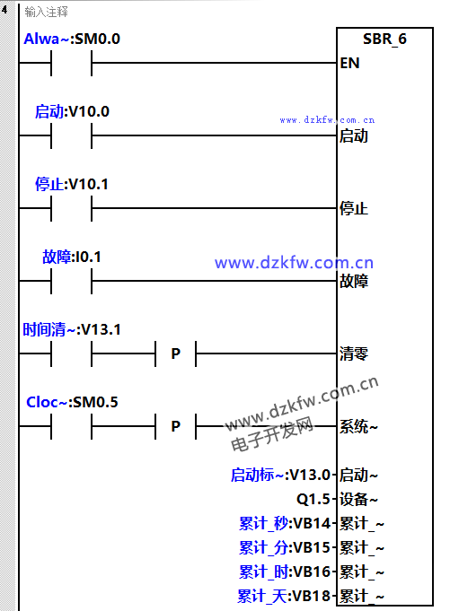 (3)当按钮停止按钮或者设备故障了,运行时间保留,再次启动时,时间继续累计。