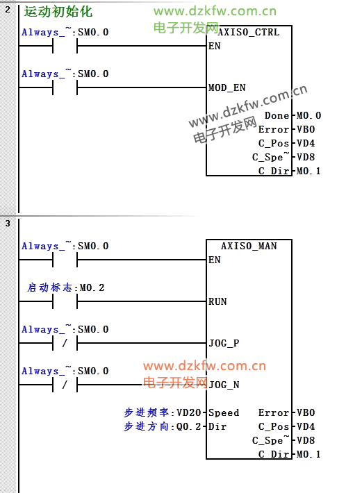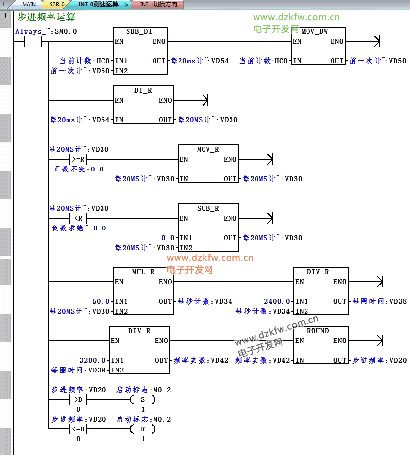 主程序需要编写高速计数每20ms读取一次计数值,(高速脉冲HDEF指令和中断程序运用)如下所示: