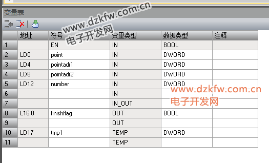 需要注意的是:配方显示地址的首地址也要建立指针,而且该形参的类型必须定义为IN类型,否则选中的配方数据无法正确传送到该地址区域。