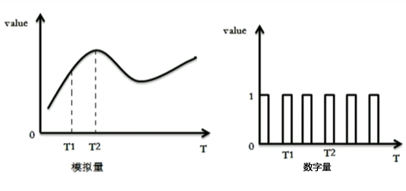 与模拟量相对的就是我们熟知的开关量,模拟量与开关量是完全不同的物理量,两者之间并没有多大的关联,在应用领域上都不同,但是通过对二进制和十进制的研究且把他连接起来。