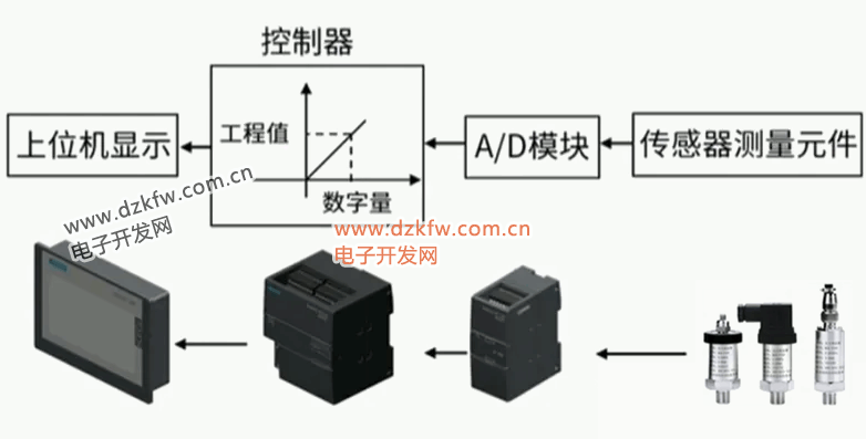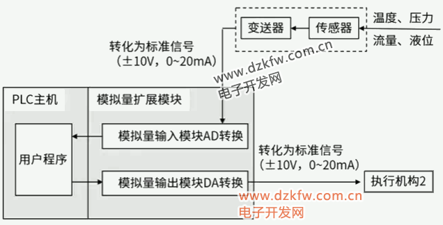 (1)模拟量信号采集,由传感器完成,传感器将非电信号(如温度、压力、液位、流量等)转换为电信号。此时的电信号可能是一个很小的信号。
