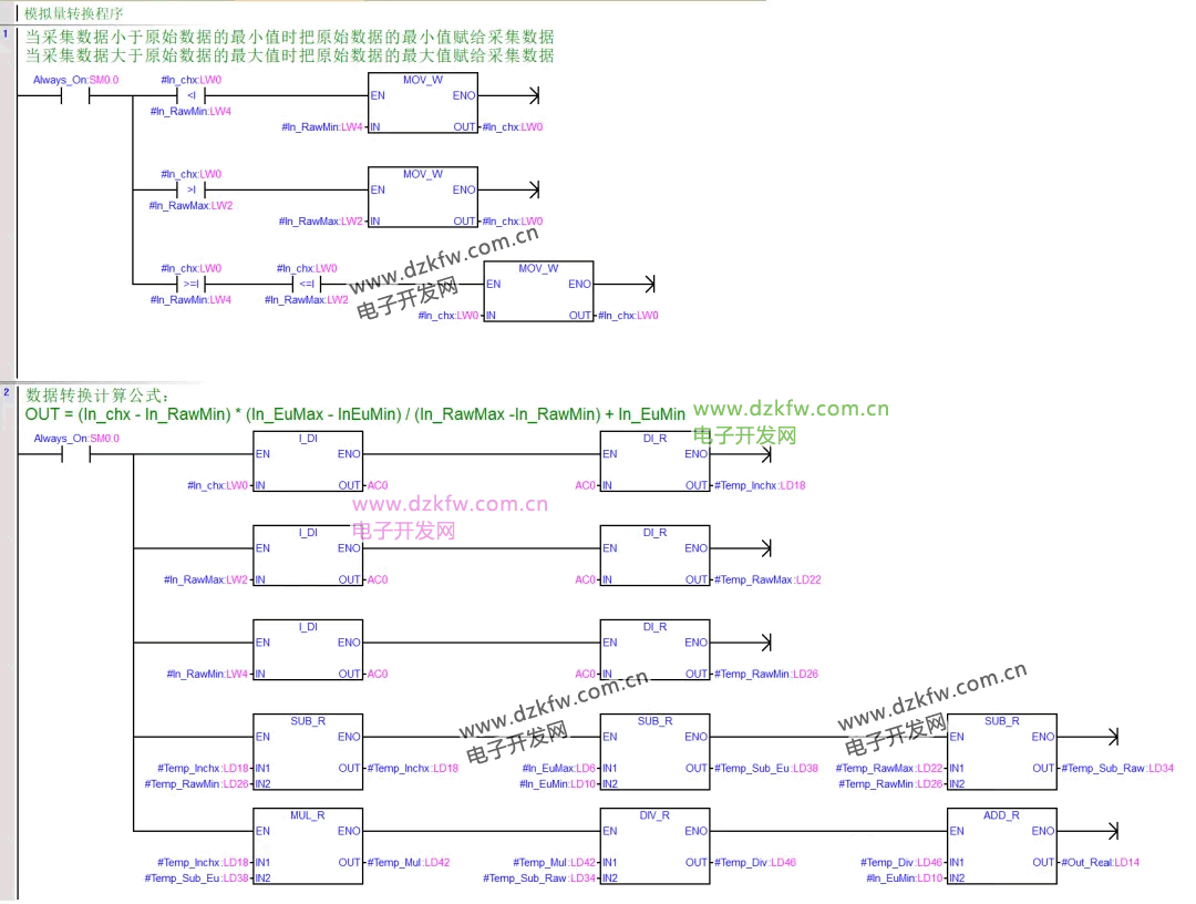(3)A/D或是D/A的处理,主要针对于模拟量信号和数字量信号的转换操作,A/D用于模拟量输入的转换,D/A用于模拟量输出的转换。