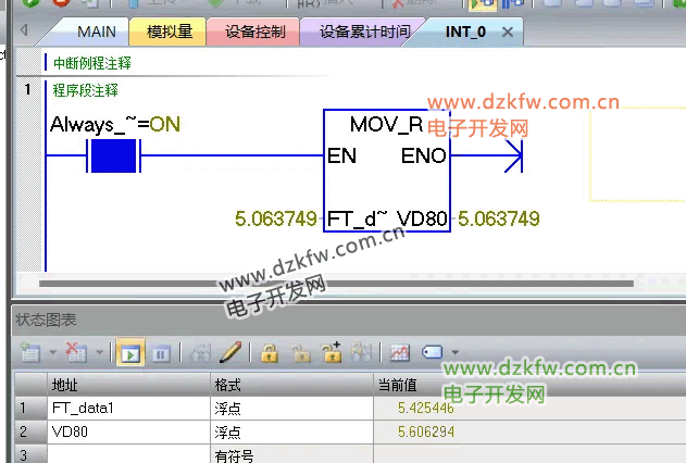 中断程序中,每200ms,将FT-data1的数据放在VD80中。