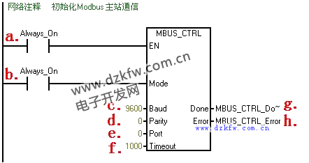 使用 SM0.0 调用 MBUS_CTRL 完成主站的初始化,并启动其功能控制: