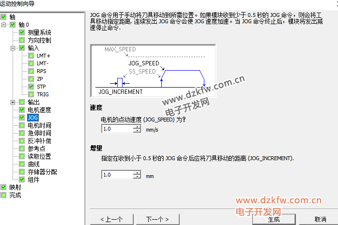 Speed:手动运行的速度,单位为mm,但电机有一个加速匀速减速的过程,按照向导的加减速来走;