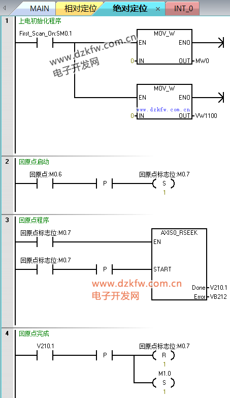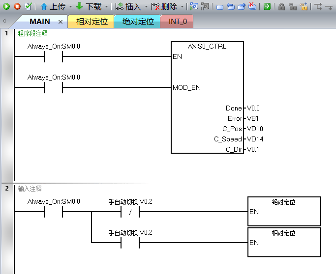 调用轴初始化指令和调用绝对定位、相对定位的子程序