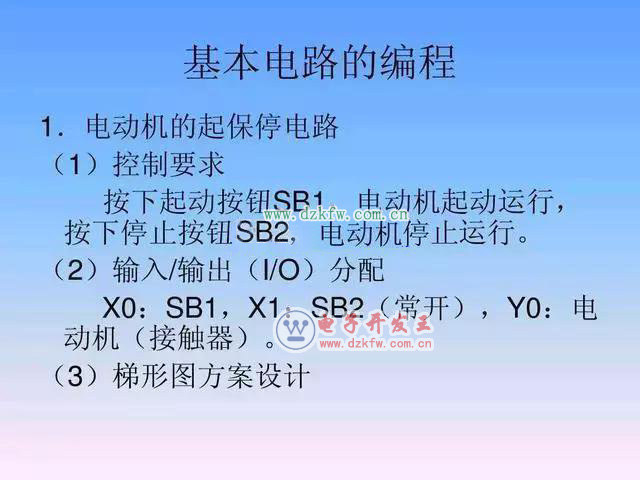 plc梯形图基本电路编程举例 起保停电路梯形图。 电动机两地控制梯形图。 两台电动机顺序联动控制梯形图。 定时器电路梯形图。 三台电机顺序启动电路梯形图。