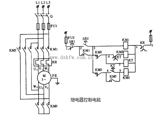 图1 电动机Y/△减压起动控制主电路和电气控制的原理图