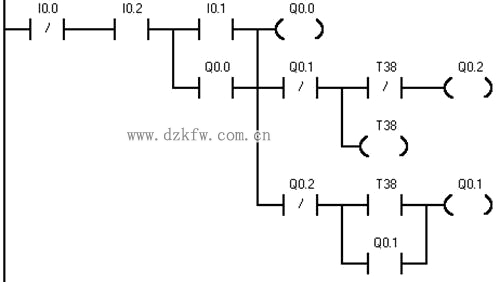 转换后的梯形图程序如图2所示。按照梯形图语言中的语法规定简化和修改梯形图。为了简化电路,当多个线圈都受某一串并联电路控制时,可在梯形图中设置该电路控制的存储器的位,如M0.0。简化后的程序如图3所示。