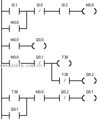 停止按钮SB1:I0.0 KM1:Q0.0 KM2: Q0.1