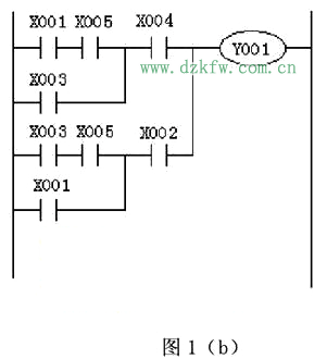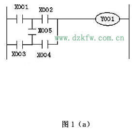 一、梯形图中的触点应画在水平线上,而不能画在垂直分支上,如图1 (a),由于X005画在垂直分支上,这样很难判断与其他触点的关系,也很难判断X005与输出线圈Y001的控制方向,因此应根据从左至右,自上而下的原则。正确的画法如图1 (b)