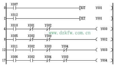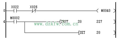 公用程序如图4所示,当执行但不工作方式时,X22为ON,特殊辅助继电器M8040为ON,为禁止转移状态。假设系统处于初始状态,当按下启动按钮,系统开始以单步工作方式运行,在完成某一步的动作后必须按一次启动按钮,系统才能进入下一步。