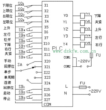 根据I/O分配表,可画出PLC的外部接线示意图。