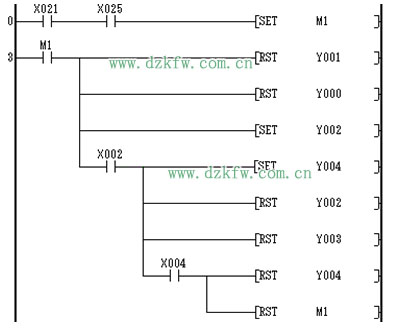 如图3为回原点程序,在系统处于回原点状态时,按下回原点按钮(X25为ON),机械手松开并上升,当上升到上限位,机械手左移直到碰到左限位开关才停止。
