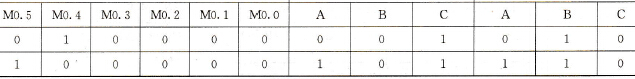 其中,M0.6和M0.7始终为“0”,据此,可做出移位寄存器输出状态及步进电动机绕组的状态真值表,如表7-7所示。