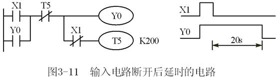 供其线圈“通电”后延迟动作的触点,如果需要在输入信号变为OFF之后的延迟动作,可以使用图3–1l所示的电路。