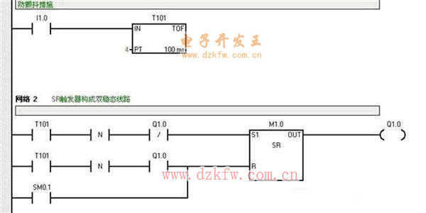 当第三次按按钮,其输出同第一次按钮输出。即Q0.0=1,当第四次按按钮,其输出同第二次按钮输出。即Q0.0=0。。即每按一次按钮,其输出Q0.0将改变一次输出状态。