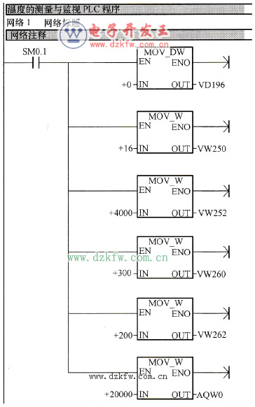 MOVW AIW4,VW200 ∥把测量温度数字量装入VW200