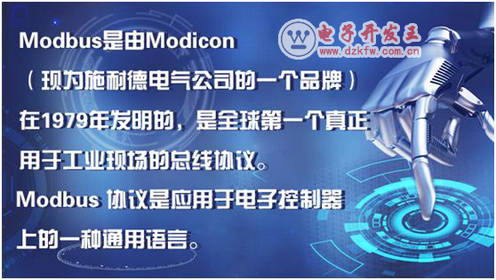Modbus是由Modicon(现为施耐德电气公司的一个品牌)在1979年发明的,是全球第一个真正用于工业现场的总线协议。Modbus 协议是应用于电子控制器上的一种通用语言。通过此协议,控制器相互之间、控制器经由网络(例如RS485)和其它设备之间可以通信。