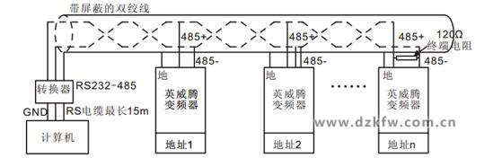接线常采用如图1-1所示的链式连接法,在远端加上120Ω的终端电阻。
