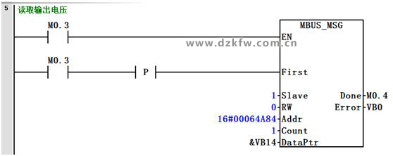 将十六进制3003转换成十进制为12291,超出49999的范围,所以将12291+400001=41292,再转换成十六进制为16#64A84,程序如图1-7所示。