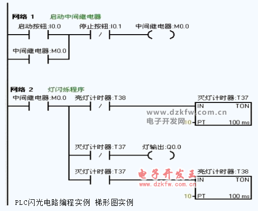 把编写好的程序下载到西门子s7-200PLC中进行调试。观察运行结果和实验要求 是否相同。通过在线控制面板进行调试,当按下在线控制面板上的I0.0f(即 I0.0 接通)此时Q0.0有输出,Q0.0所接负载灯就亮,同时启动定时器T37开始计时, 当计时一秒后因T37动作,其常闭触点断开,所以Q0.0无输出,所接负载灯灭。灯灭的同时启动定时器 T38,T38 计时一秒后,把串联在定时器T37的常闭触点 断开,所以T37复位,T37常闭触点恢复常闭。此时Q0.0 又有输出, 所接负载灯又亮。这样,输出Q0.0上所接的负载灯以接通一秒,断开一秒频率不停的闪烁,直到按下在线控制面板上的 I0.1f(即I0.1接通),闪光电路不在继续工作。若想改变灯闪烁的频率只要改变定时器的时间就能够达到改变要求。