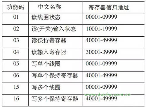 MODBUS寄存器的地址,根据功能码的不一样,主要有4种类型的表示方式,分别为0XXXX(读写线圈状态),1XXXX(读开关输入状态),3XXXX(读输入寄存器),4XXXX(读写保持寄存器)四种类型,对于第四种类型4XXXX的类型,地址可以扩展,扩展为4XXXXX六位数的类型格式。