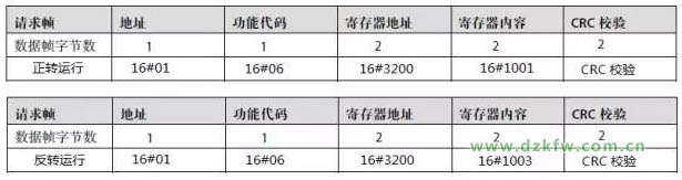 RW:读写操作选择,0表示读,1表示写,若控制变频器运行,使用写的功能,若需要读取变频器的电流等需要用读的命令。