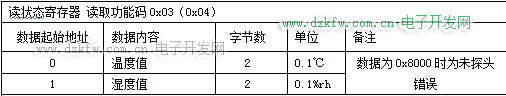 湿度实时寄存地址为1,对应modbus通讯里的40002