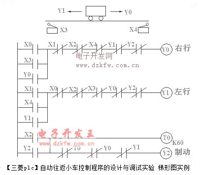 自动往返小车的工作过程及程序梯形图如图1所示。