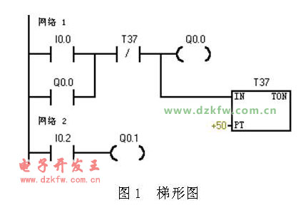 功能块图程序设计语言是采用逻辑门电路的编程语言,有数字电路基础的人很容易掌握。功能块图指令由输入、输出段及逻辑关系函数组成。用STEP7-Micro/Win32编程软件将图1所示的梯形图转换为FBD程序,如图2所示。方框的左侧为逻辑运算的输入变量,右侧为输出变量,输入输出端的小圆圈表示“非”运算,信号自左向右流动。