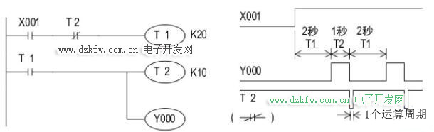 另外,在一些以时间控制的设备上采用的定时器,某个工艺需要经过多长时间才能加工好,这时定时器在计时完成后关闭设备运转加工完成。定时器除了延迟功能,也可以用于闪烁,周期性控制某个输出。