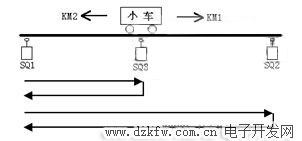 sb3—小车停止按钮sq1—左终点行程开关 sq2—右终点行程开关。