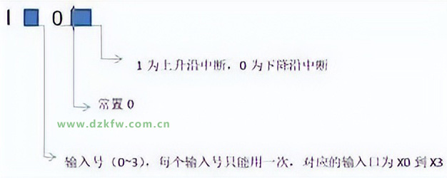 在这里FEND前面的为主程序,FEND后面的为中断子程序,中断子程序能否进行与中断条件与中断指针有关,所以在这里我们得给大家说说中断指针的格式: