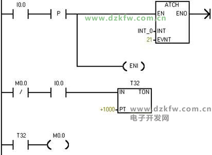 然后,在开总中断,(ENI)指令就是开总中断,使用S7-200PLC的中断一般有3个步骤: