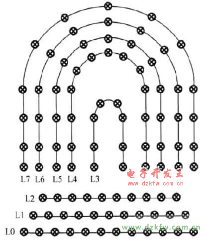 一个舞台灯光的控制系统设计,舞台灯光布置示意图如下: