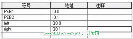 有两个光电传感器PEB1和PEB2,所以就有两个输入;有两个指示灯left和right,所以就有两个输出。