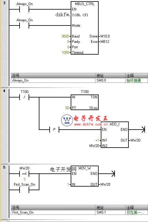 准备工作完毕,接下来就开始我们的PLC编程了,因为200smart软件自身就带了Modbus协议库,所以,不需要我们另外去添加了,下面就介绍下怎么编程的。