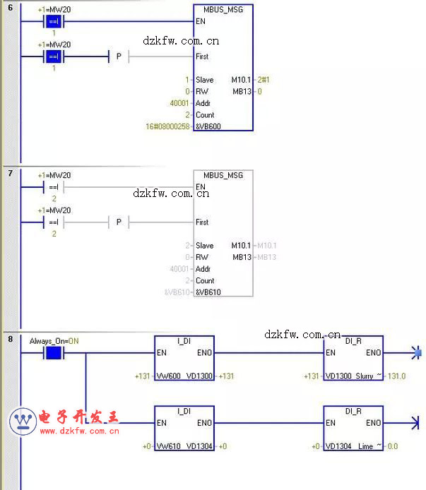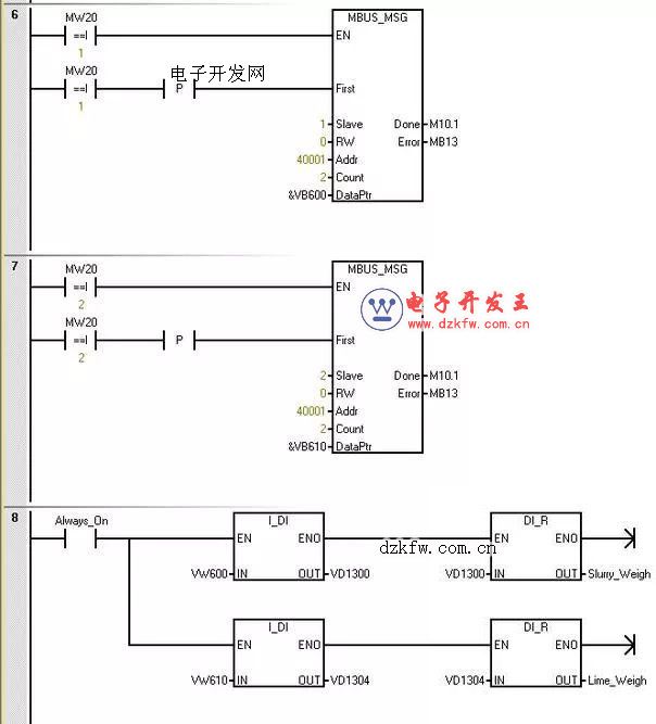 地址1的仪表数据被存入到VW600中,地址2的仪表数据被存入到VW610中。