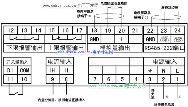 下图2. 青智仪表ZW1619-RS485 端口的引脚分配