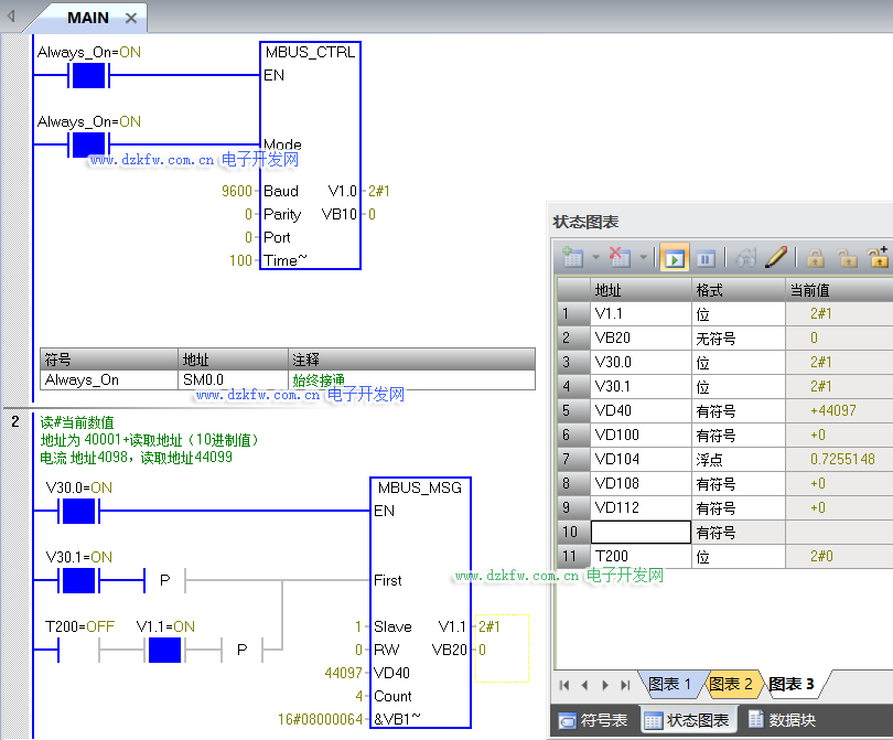 这里简单介绍下西门子plc梯形图编程实例 使用西门子200smart PLC与电流表进行 Modbus RTU通讯