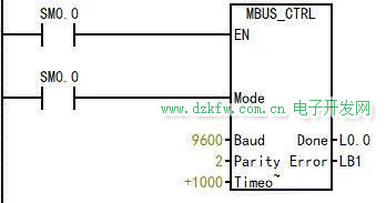 首先对PLC RS-485 通讯口进行初始化,使其通讯格式为 MODBUS ASCII,9600,7,E,1。变频器RS-485 通讯口通讯格式需与 PLC 通讯格式一致。
