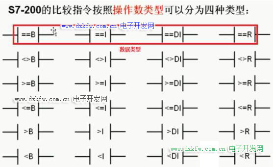 本节来学习下西门子s7-200“比较指令”的知识,西门子plc梯形图程序编程,下面是比较指令的常见类型:
