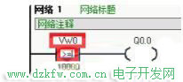 由于比较的数是10000,大于256的取值范围,所以比较指令类型选择I类型;同时,在指令命名时,也需要选择VW0,而不是VB0.