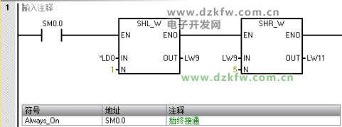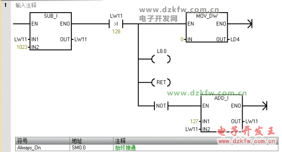 3、用64位浮点数的指数减去1023,再加上127得到32位浮点数的指数部分。梯形图实例程序如下: