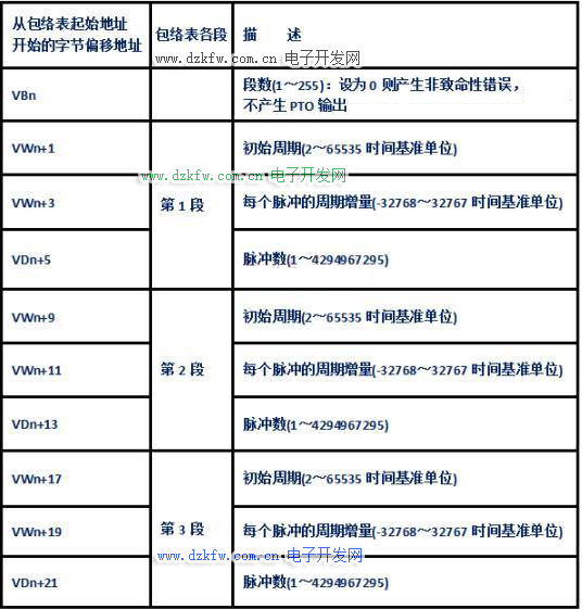 2.多段PTO:集中定义多个脉冲串,按顺序输出多个脉冲串(特性参数通过包络表集中定义) 。
